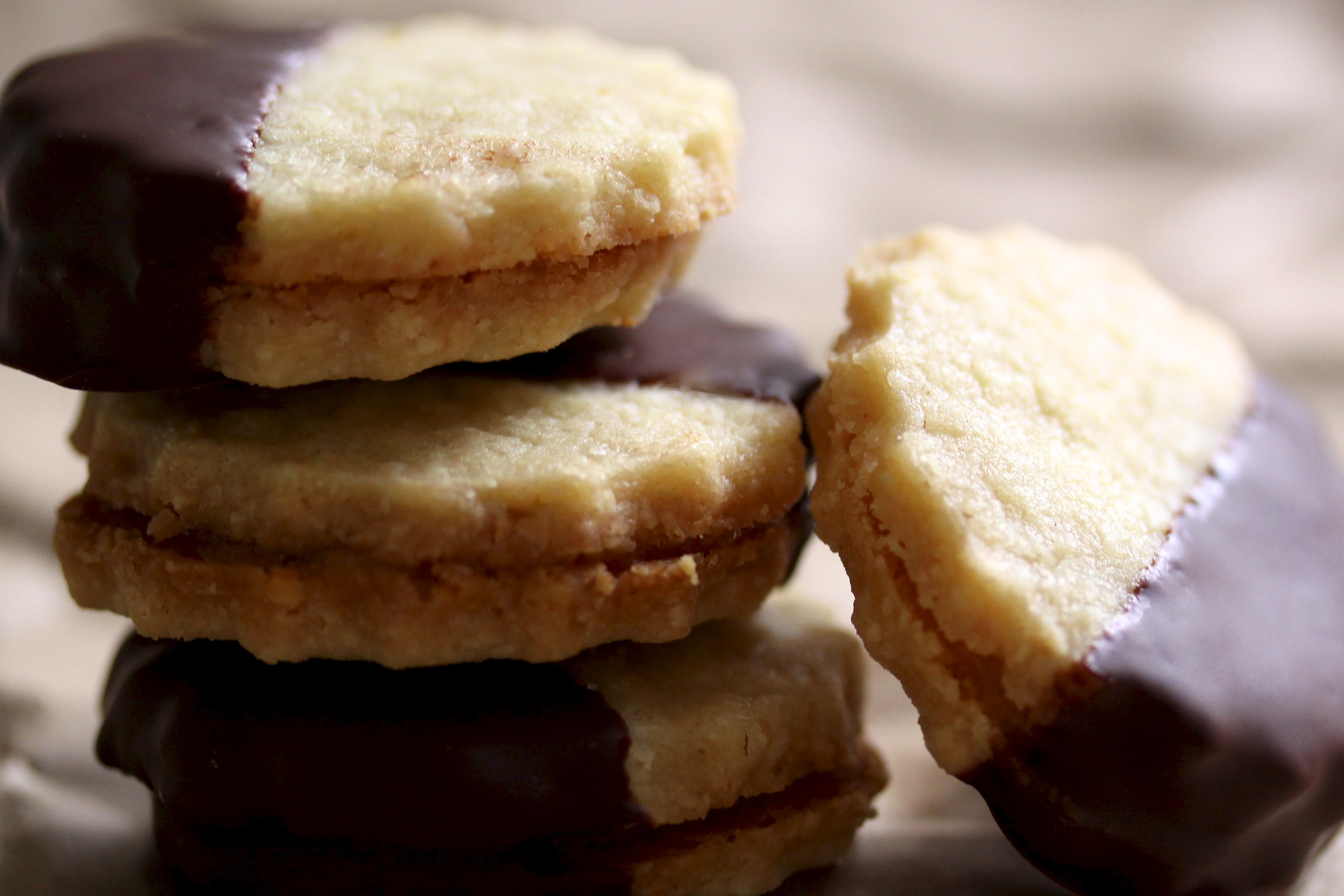 It takes an astonishing amount of effort to produce even a few of these buttery-short almond delights, sweet with apricot jam filling and dipped in silky bittersweet chocolate.  In the old days, most were reserved for Michelle’s mother (and Steve, who is not, we are sad to say, above stealing). Jam and cookiesChocolate glazeMichelle plans again to give most of the Ischlers to her mother, but has been reviving the Christmas cookie tradition with a few more varieties, some old and some new. The sweet cookie stocks found before the turn of the century may never return to their dizzying heights, but the denizens of Gourmandistan (OK, mostly Steve, who cooks no cookies) see even this modest recovery as a very positive holiday development. Ischler cookies