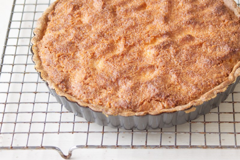We made one recently to use up some more of our mysterious coconut surplus, and were once again pleased with the sweet, semi-tropical taste. Revisiting this recipe also helped Michelle pick up a handy way to remove a tart ring: place the tart on a smaller surface like a coffee can, and gently press down on the ring until it detaches—much better than her usual practice of balancing a hot tart bottom on her hand. Supposedly the recipe works with canned as well as fresh pineapple, making it a good way to get a fruit tart when no fresh stuff is about.