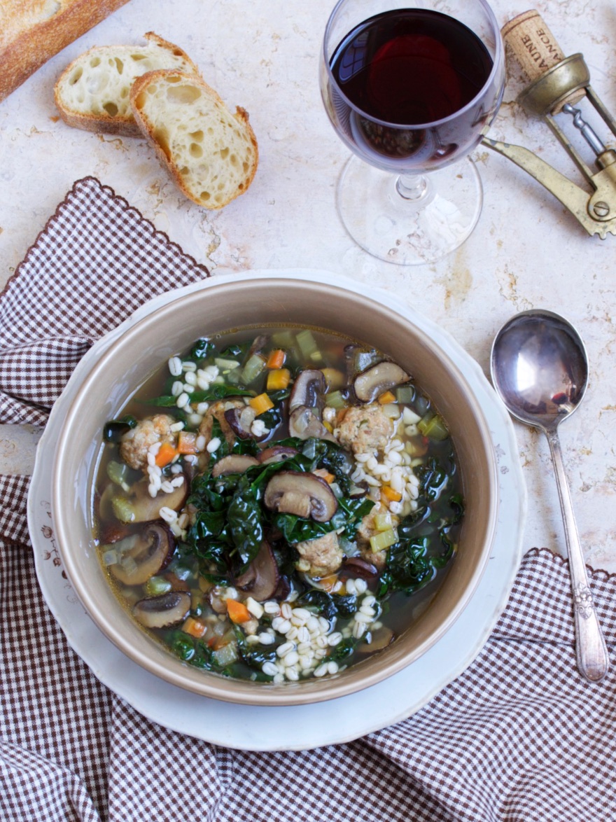 Beef and Barley Soup with Meatballs, Kale and Mushrooms