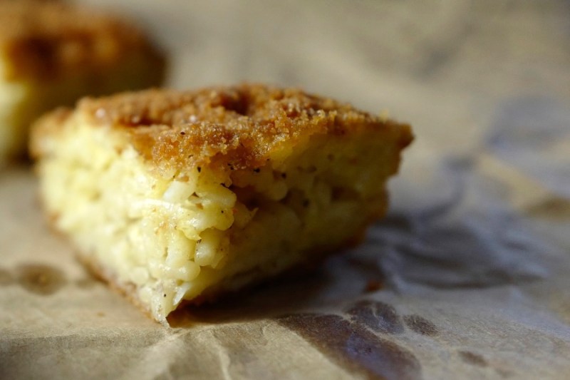 Back in America, we purchased dried Italian pasta and a hunk of Pecorino Romano, along with a Dutch semi-soft sheep’s milk cheese. (We weren’t able to find the cacio di Roma cheese our cacio e pepe recipe called for.) Putting the cheese, pasta and starchy water together was simple and delicious, giving us another easy dinner option. Chilling the surplus cheesy pasta in round molds overnight, we soon managed a reasonable recreation of Bellincampi’s fried snack. It was a lovely way to remember Rome, where we hope to someday return—this time with less sickness and more snacks.